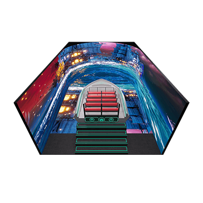 采用船型座艙設計,結合動感平臺與全觀感包圍弧形巨幕,無需3D眼鏡即可將觀眾徹底帶入沉浸式觀影現場,打造“所見即所感”的極致體驗,動感平臺模擬救援沖鋒舟的顛簸,噴淋系統與風機精準同步畫面,營造風雨撲面的真實觸感。是文旅景區、主題樂園引爆客流與口碑的旗艦型體驗設備。
